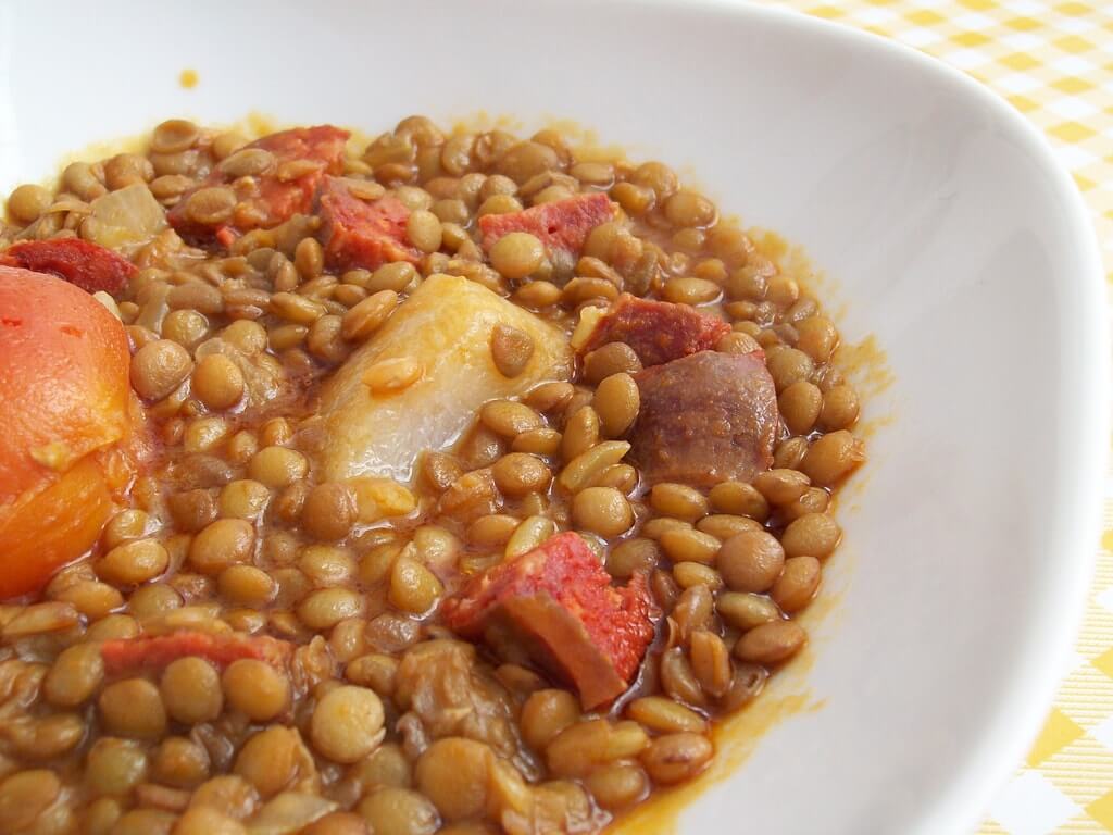 Trong gia đình Tây Ban Nha thường có đậu lăng và xúc xích chorizo cho bữa trưa Năm mới để mang lại may mắn. Truyền thống xứ sở bò tót nói rằng mỗi hạt đậu lăng tròn nhỏ tượng trưng cho một đồng xu. Ăn súp “đồng xu” vào bữa trưa vào ngày đầu năm mới được cho là sẽ mang lại cho bạn sự giàu có trong năm tới! Chưa kể món súp thịnh soạn này còn là một cách tuyệt vời để “hâm nóng” trong những ngày se lạnh của tháng Giêng.