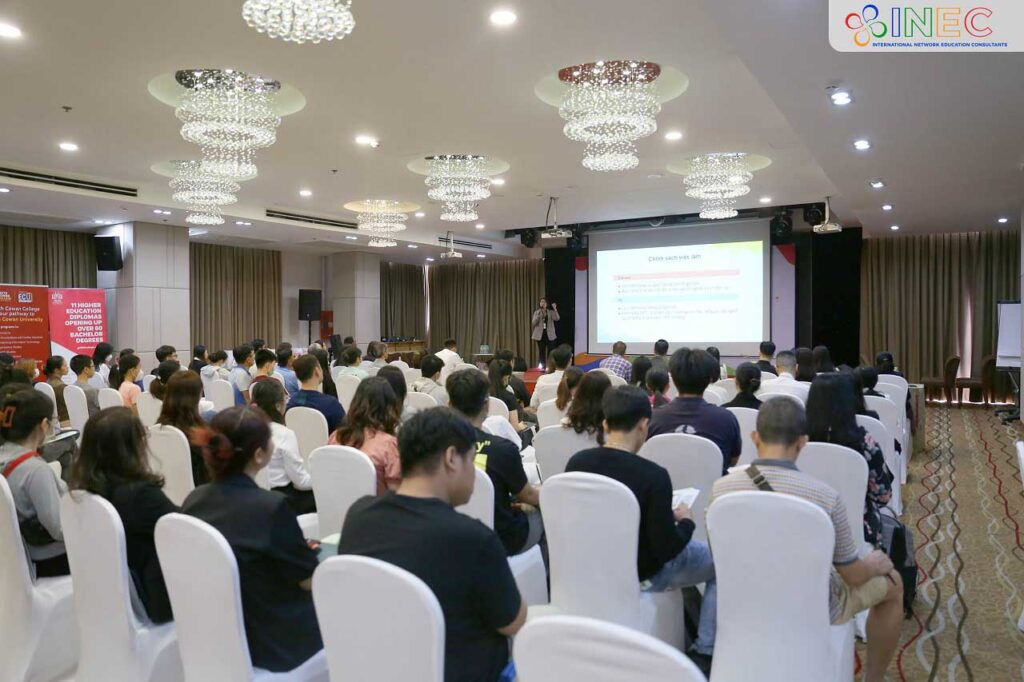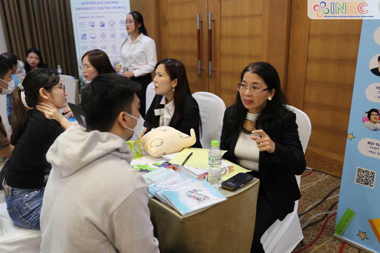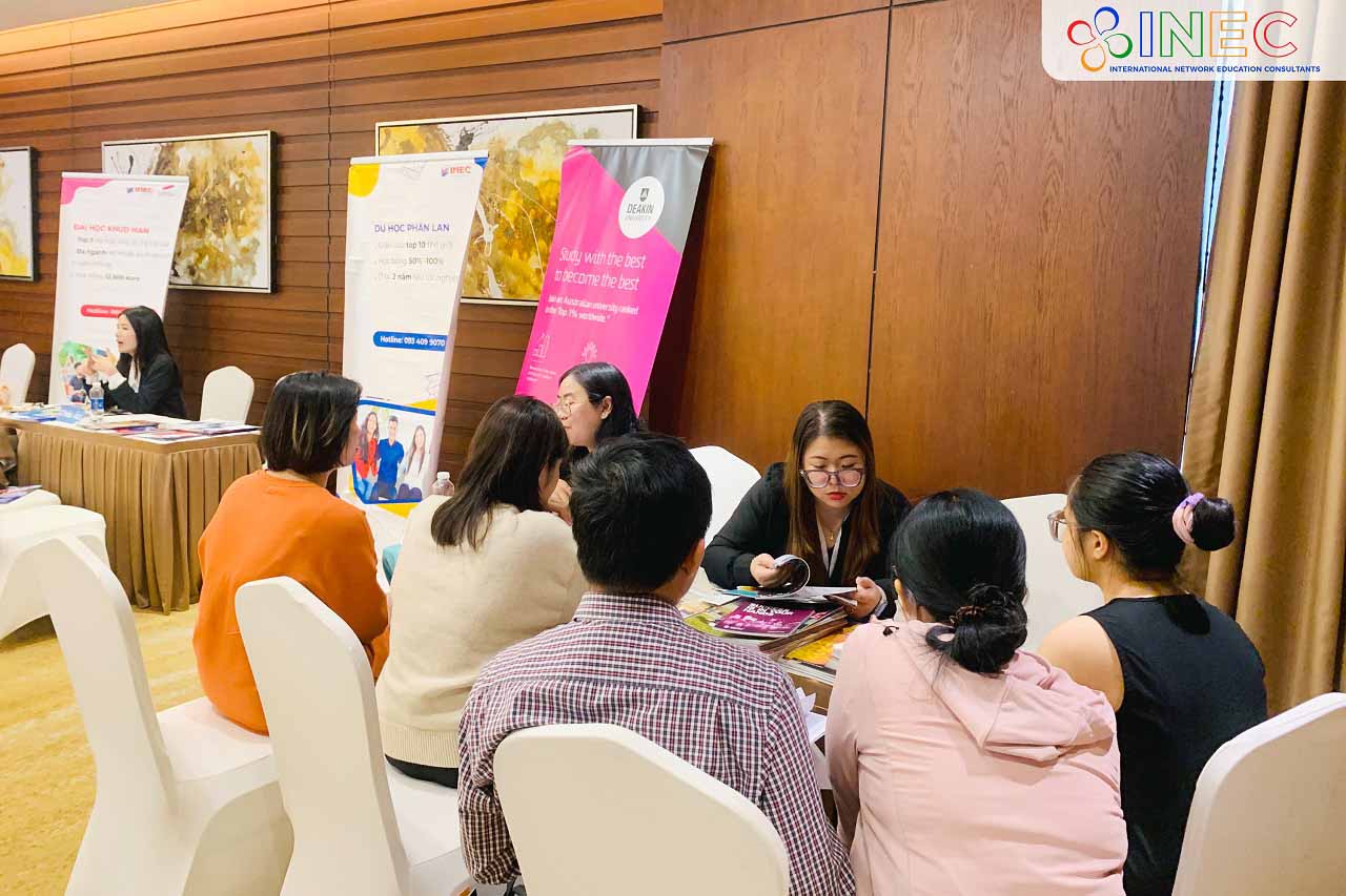 Hoạt động kết nối phụ huynh và học sinh, sinh viên với đại diện các trường đại học, học viện uy tín từ các cường quốc giáo dục như Úc, Mỹ, Canada, Hà Lan, Thụy Sĩ, Anh Quốc, Singapore… INEC tin rằng các em đã có cơ hội lắng nghe, hiểu rõ hơn về chính sách học bổng, ngành học, chương trình đào tạo, yêu cầu đầu vào tại các trường; phụ huynh cũng được giải đáp những thắc mắc về các vấn đề tài chính, hồ sơ, môi trường sinh hoạt…