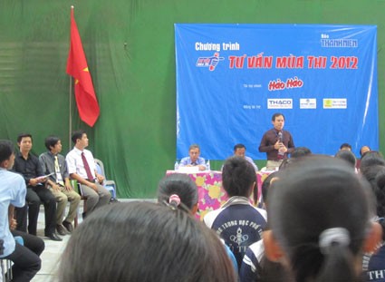 Tuy buổi tư vấn diễn ra trong thời tiết khá nóng nhưng chính nhờ những tiết mục văn nghệ ngẫu hứng “cây nhà lá vườn” của ban tổ chức và của một bạn học sinh trường THPT Nguyễn Việt Hồng đã làm cho không khí buổi tư vấn trở nên rất vui tươi và sôi động.