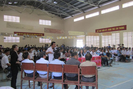 Buổi tư vấn chung bắt đầu vào lúc 2h00 chiều, thời tiết cũng khá nóng và nhiều nắng nhưng dường như cái nắng, nóng không làm giảm đi số lượng học sinh tập trung về đây để tham dự chương trình.