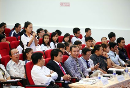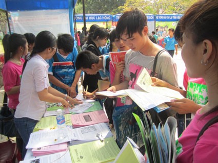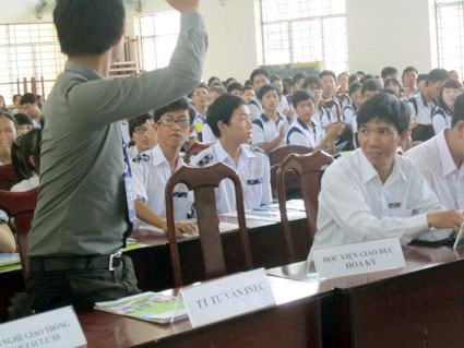 Mặc dù thời tiết ở đây rất oi bức nhưng học sinh cũng đến tham dự khá đông để được các chuyên gia tư vấn quy chế tuyển sinh CĐ, ĐH năm nay và được INEC tư vấn, cung cấp những thông tin về du học, học bổng các nước.